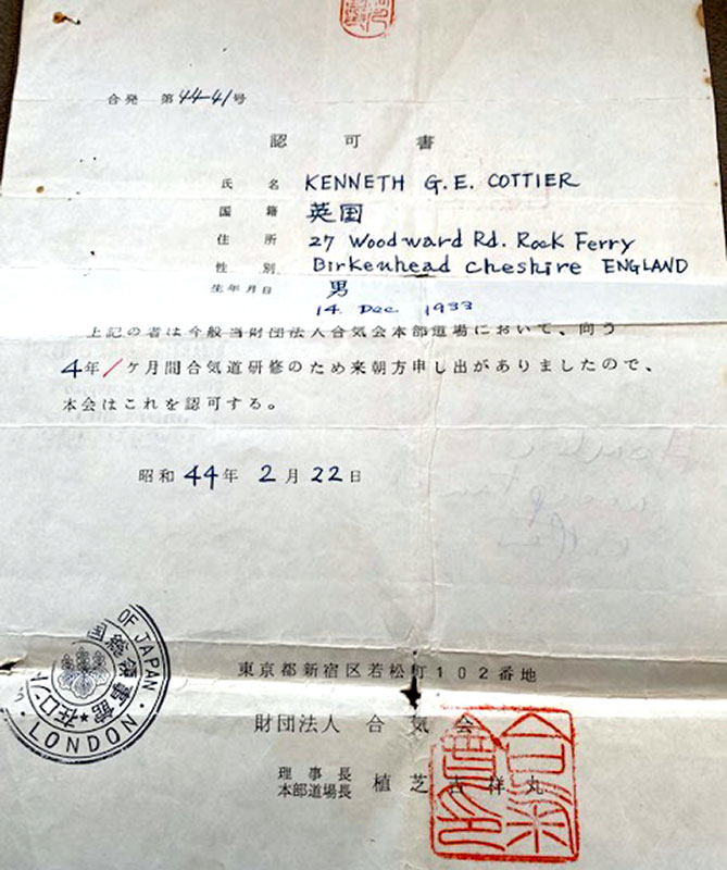 Kenneth George Edward Cottier was born on December 14th, 1933, which as he always liked to point out, was 50 years to the day after O Sensei. Cottier belonged to a working class family who lived in Birkenhead, which was once a busy shipbuilding town located near Liverpool, United Kingdom.