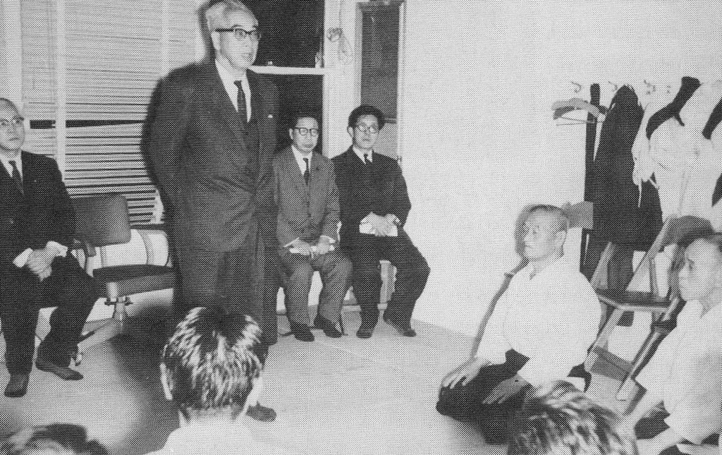 Ishii Mitsujiro at the Kansai Aikido Club in 1962. Hisa is kneeling on the right.