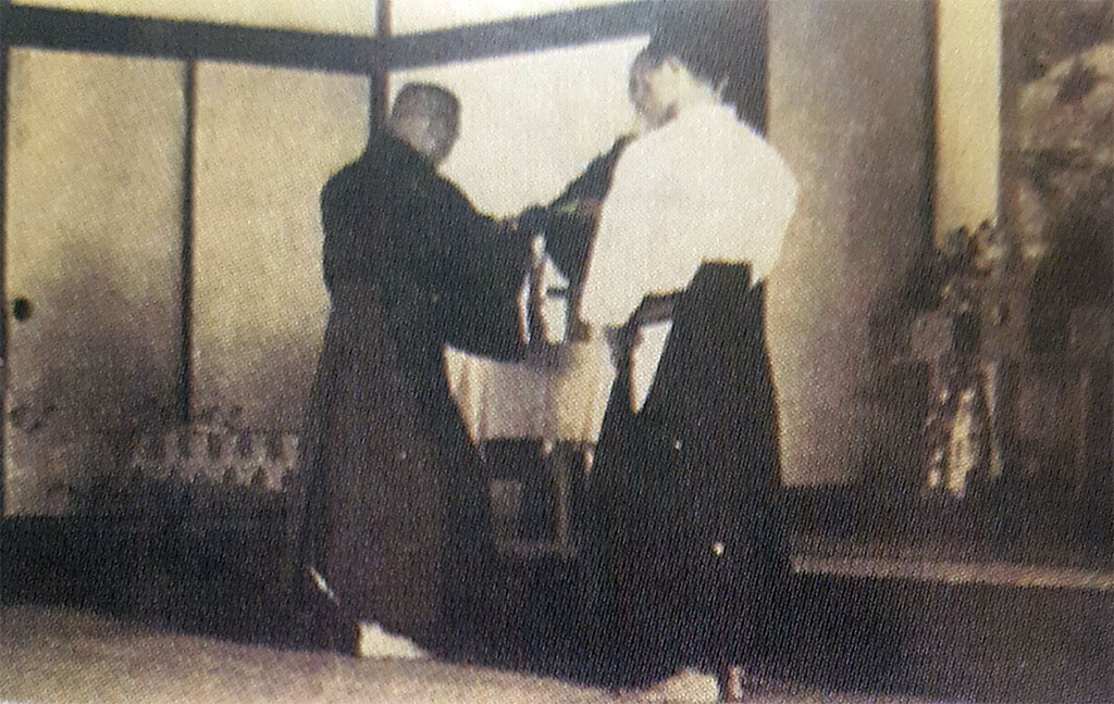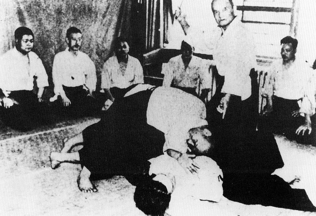 Hello in there! Send out the Director of General Affairs. I am Ueshiba Morihei’s Aiki-jujutsu teacher, and my name is Takeda Sokaku. I hear that despite his inexperience, Morihei has been teaching Aiki-jujutsu here. I regard it as a matter of great importance for the honor of Daito-ryu Aiki-jujutsu if poor techniques are taught at the Asahi News, under the eyes of the whole world. So I’ve come from Hokkaido as quickly as I could. Excerpt from Hisa Takuma’s manuscript “From Aiki-jujutsu to Aikido (合気柔術から合気道へ)”
