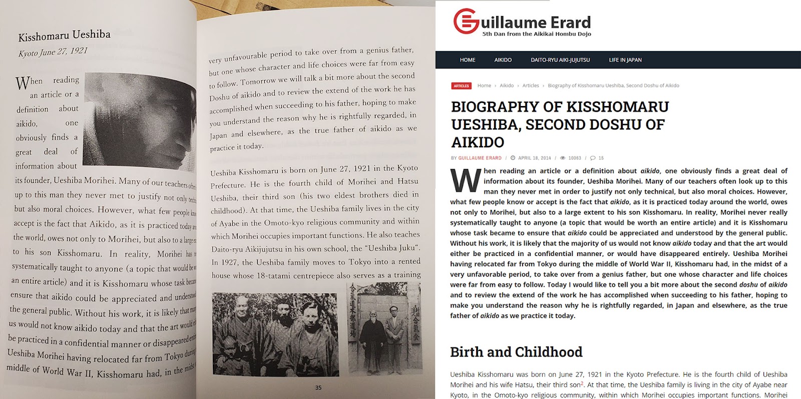 Note that my article was initially published in French in the magazine Dragon, in 2014, 8 years before the problematic book was published. The English version was published at the same time on my website and it has received very positive feedback, including from the Aikikai itself.