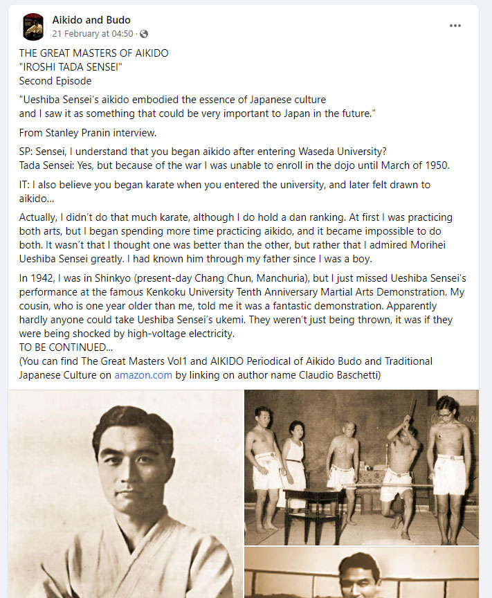 One of the numerous photos that the Aikido and Budo Facebook page is posting without authorization