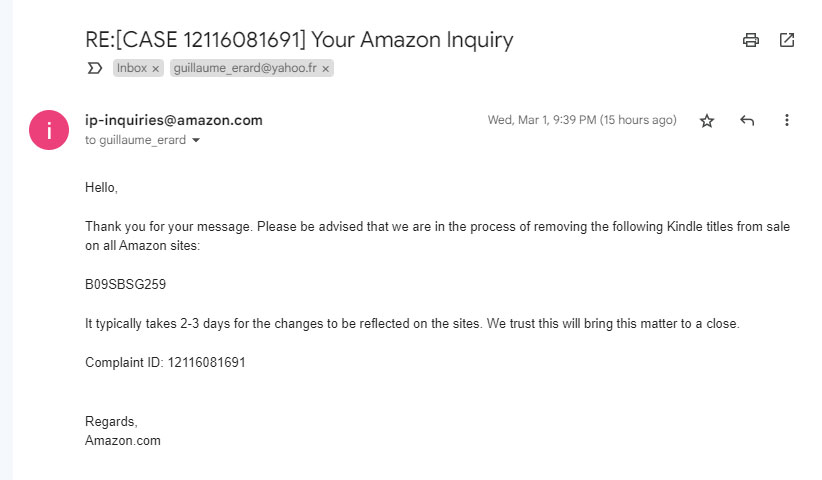 Nowadays, I just issue copyright violation reports towards Facebook, YouTube, Google, and this time, also Amazon in the hope that they will pull out this so-called book from their shelves. I have noticed that more books were released in the same series, and I shall be looking very carefully at their content.
