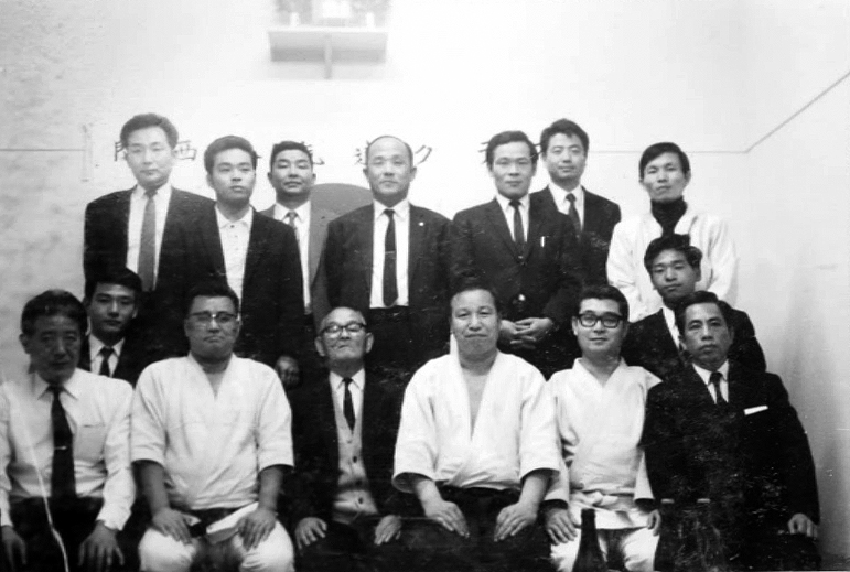 Members of the Kansai Aikido Club surrounding Hisa Takuma