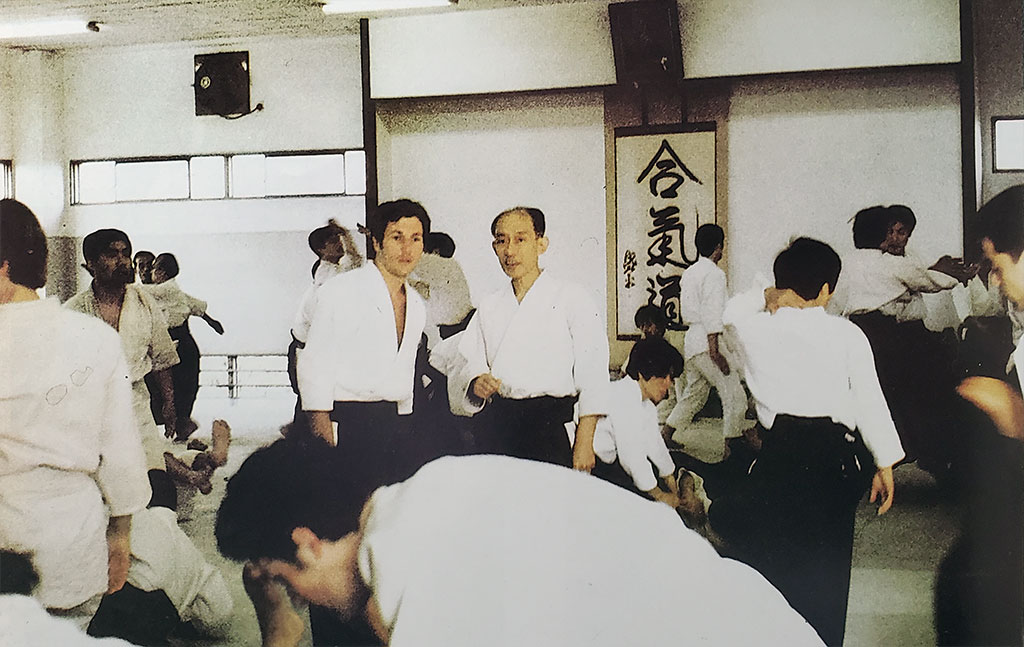 According to Tissier, the atmosphere at Hombu was very studious. O Sensei had just passed away, Tohei Koichi SenseiTohei Koichi (藤平 光一, 1920 - 2011) was a 10th dan aikidoka and the creator of ki-aikido. From 1953, he kickstarted the introduction of aikido in the West, mainly through regular teaching trips to Hawaii, but also to the continental United States and Europe. was still teaching on Friday and Saito Morihiro Sensei was coming fromn Iwama on Sunday mornings. According to Tissier, rumors were already circulating about a possible separation of some teachers and deshi. His investment and seriousness at the dojo allowed him to quickly befriend the young instructors of the time, Suganuma Morito, Imaizumi Shizuo, Endo Seishiro, Toyoda Fumio, who had just entered as sumikomi shidoin and became a very good friend with Tissier until he left for the USA.