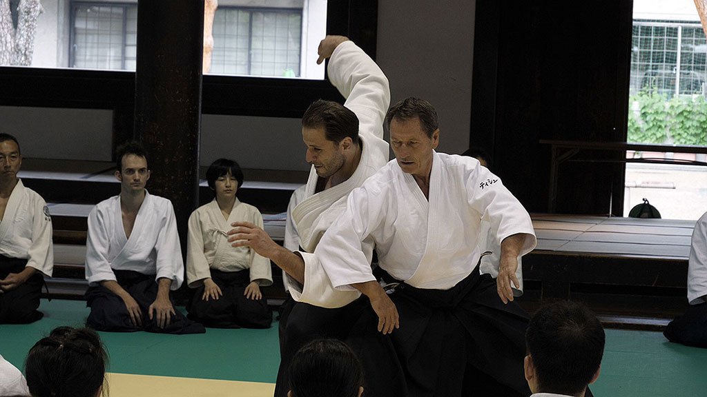 Tissier training with Ueshiba Moriteru under the watchful eye of Yamaguchi Seigo.